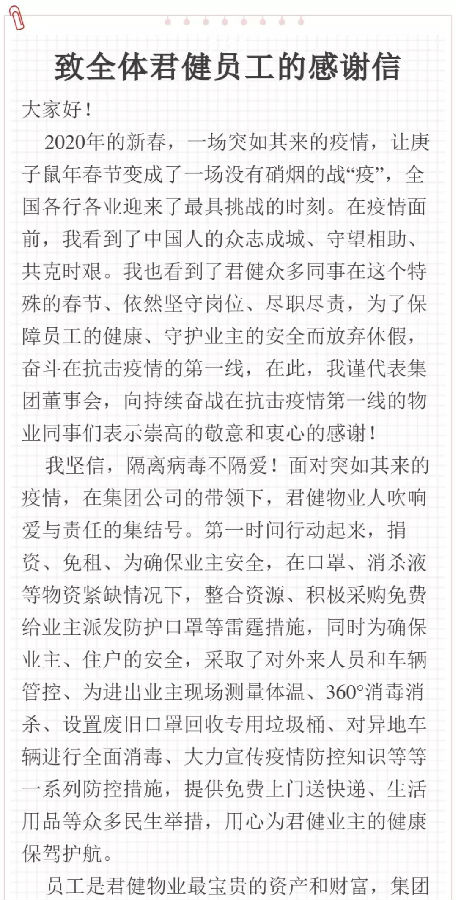 我們君健物業人,不辭辛苦,放棄假期,只為居民健康!天佑中華,共戰疫情!加油!