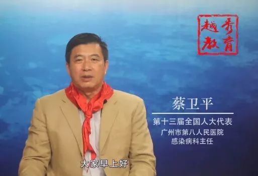 由第十三屆全國人大代表、廣州市第八人民醫(yī)院感染病科主任蔡衛(wèi)平為我們進(jìn)行國旗下發(fā)言。他曾榮獲廣東省抗擊非典一等功,30多年來多次參加非典、登革熱等廣州市重大突發(fā)性傳染病疫情等收治工作,如今又沖在抗擊新冠肺炎疫情一線。