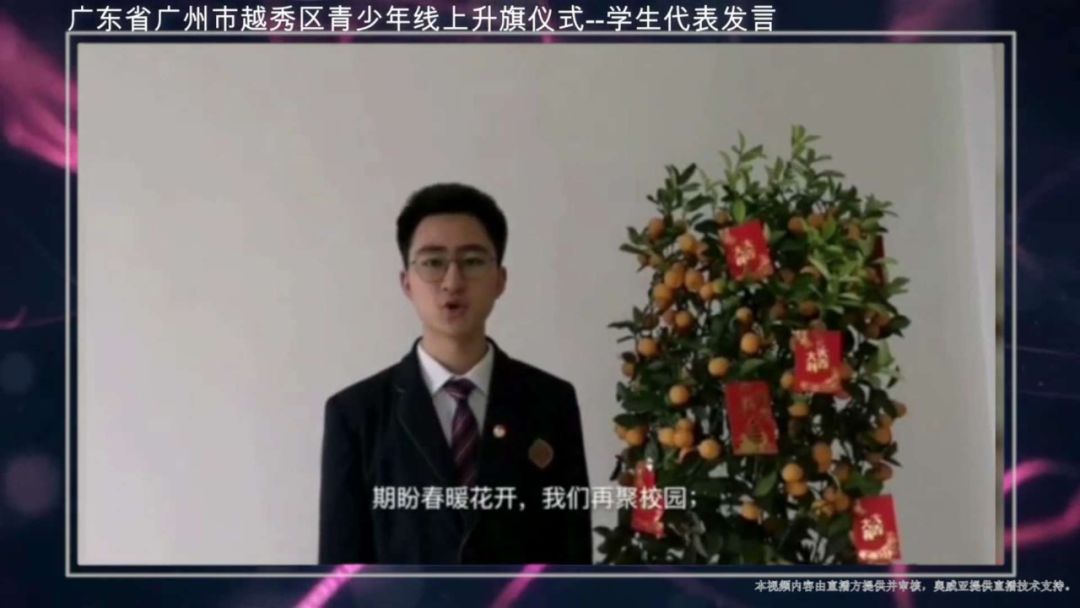 2月18日,全體師生在線上,共同觀看了廣州越秀區(qū)線上升旗儀式,雖然體驗(yàn)不一樣,但這份情感是更濃了。