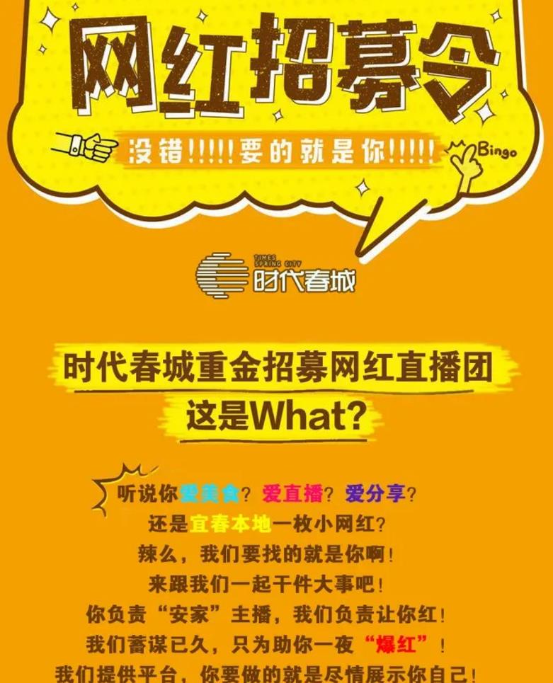重磅丨時代春城重金招募網紅直播團!