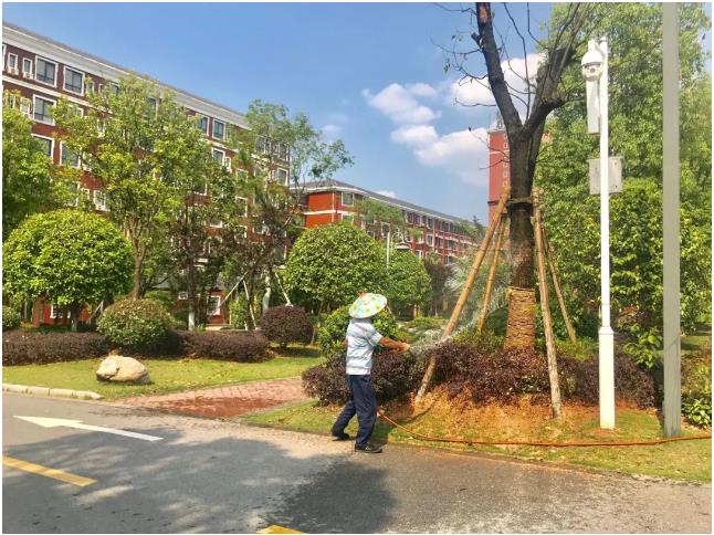 春季萬物生長,校園的花草也在猛長。走在校園中,會看到做園藝的叔叔在太陽下除草、修剪花枝。當(dāng)我們走在遮擋風(fēng)雨長廊里的時候,看到頭頂草帽、額頭流汗的叔叔,這時的他們真的很帥。