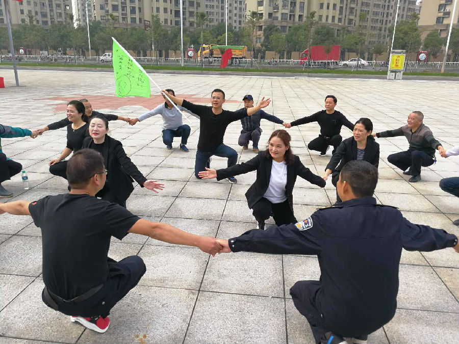 10月30日,君健物業(yè)公司組織各項目管理處文員、樓管、水電維修、保安和職能部門負責人等84名員工在宜陽森林公園進行團隊拓展訓練。活動由公司退伍軍人擔任教官,設有穿越電網(wǎng)、同心鼓、呼啦圈過山車、獨木橋排序、拔河五項活動,分四個小組展開激烈角逐比拼。
